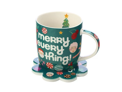 Kasey Rainbow Sparkly Season Mug 350ML & Coaster Set Dark Green Gift Boxed