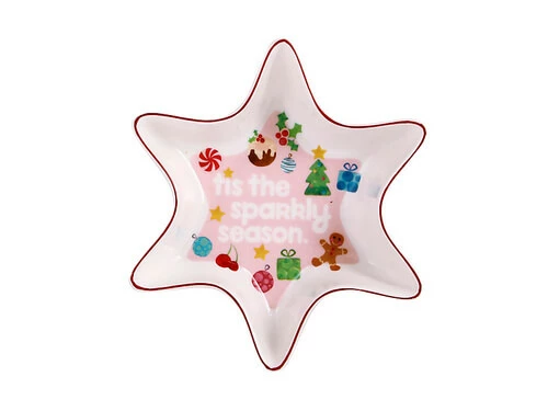 Brighten up your Christmas with this 16cm pink star dish from the Sparkly Season collection. This piece is made from quality porcelain with a star shape. Created in collaboration with Brisbane artist Kasey Rainbow, it features a festive design and a Christmas message. Perfect for serving sweet treats and snacks, itβs sure to add some cheer to your festive spread.