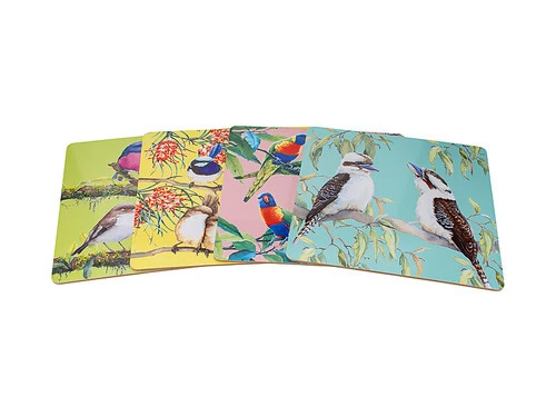 - Set of 4 x 29x29cm placemats, each featuring a different Australian bird